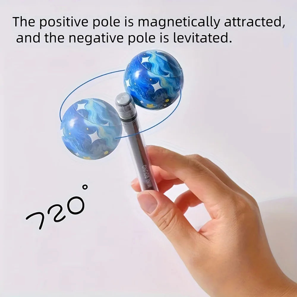 720 ° Rotating Starry Sky Magnetic 0.5 Needle Creative Black Pen Magnetic Suspension Neutral Pen Decompression Brushing Pen