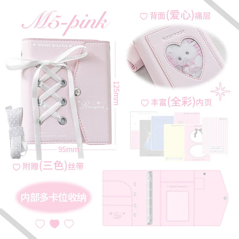 MINKYS 2025 Kawaii Ballet Pink Envelope PU Leather Notebook Planner Journal Agenda Book Gift School Stationery