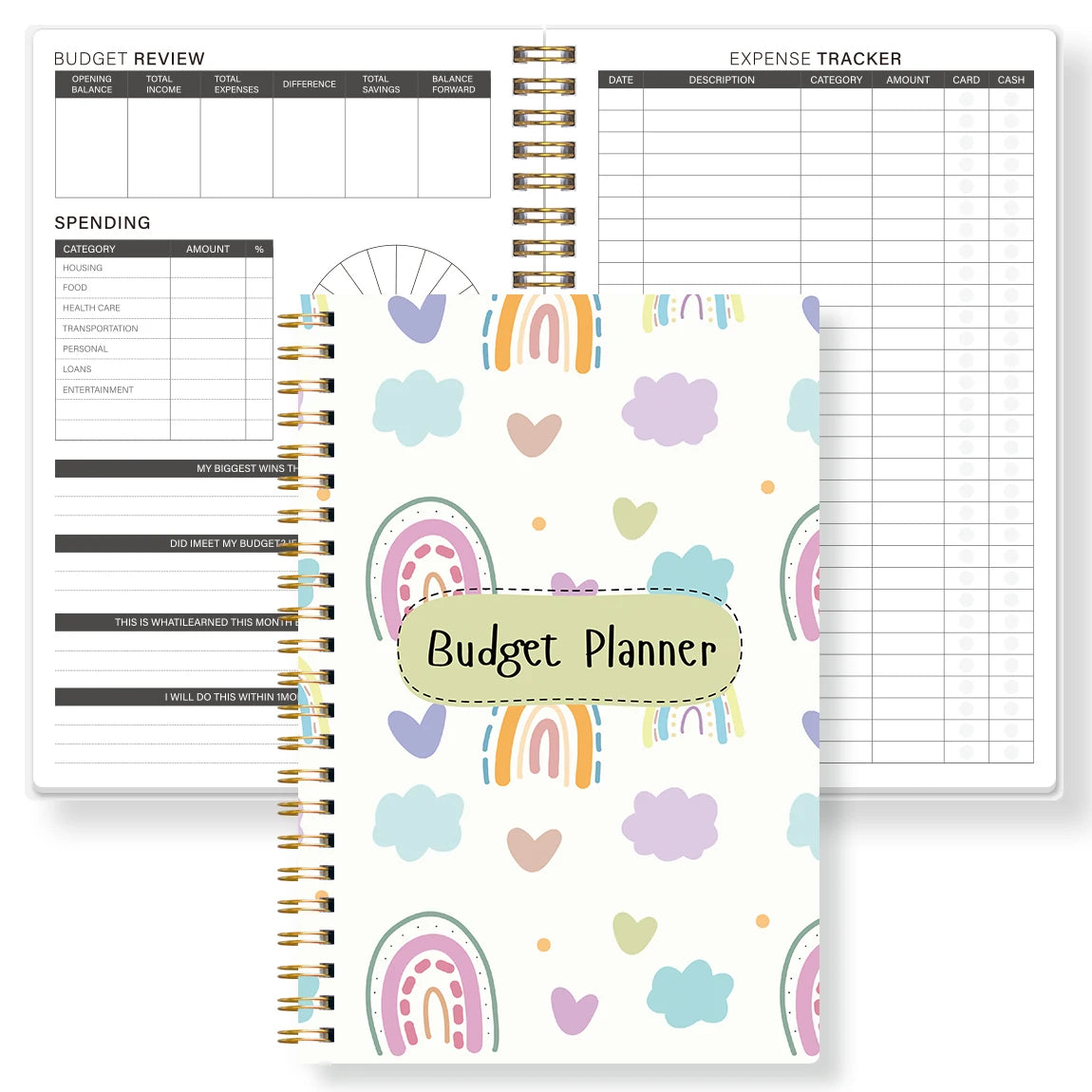 1PC A5 Budget Planner Book with Pastel Rainbow Design, Monthly Expense Tracker, Spiral Binding, Thick No-Bleed Pages
