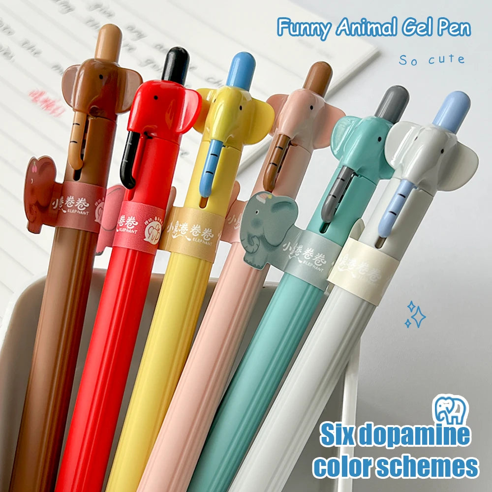 3/6 Pcs Fun Elephant Gel Pen 0.5mm Cute Animal Theme Pen Perfect for School Office and Study with Smooth Writing Black Gel Pen