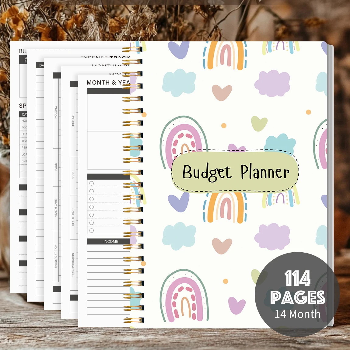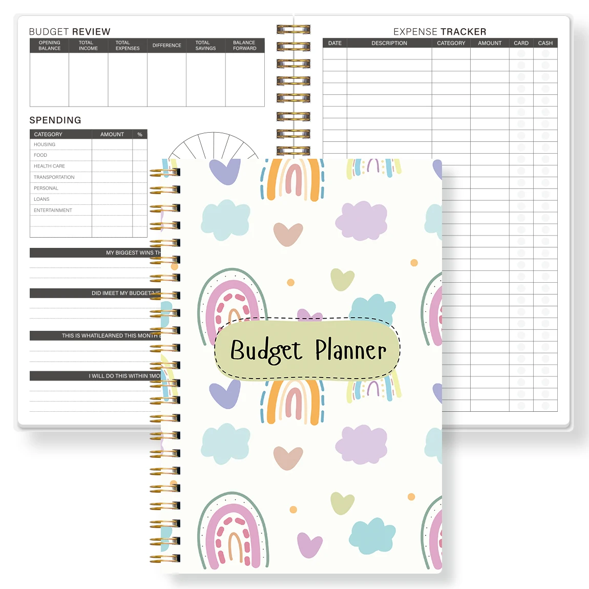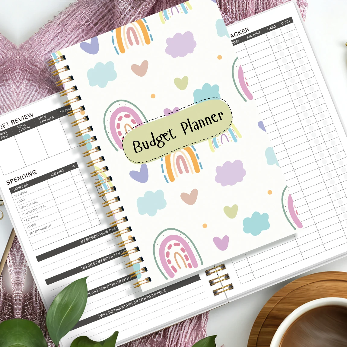 Adorable rainbow and cloud illustrations add a fresh, cheerful vibe to your budgeting routine.