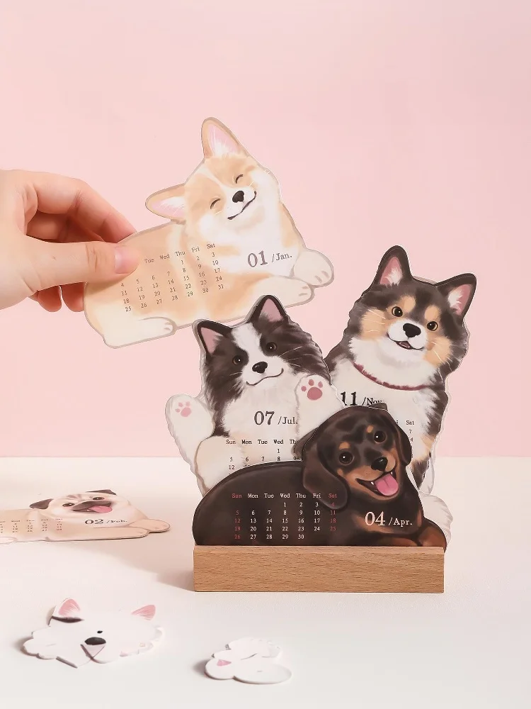 1. Beautiful and lovely design: The calendar is designed with two popular cartoon images of puppies and kittens, full of sweetness and fun. Whether it is suitable for home or on the desk, it can add vitality and warm atmosphere and attract attention.