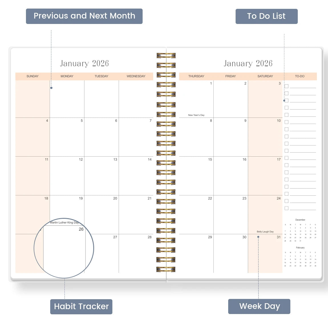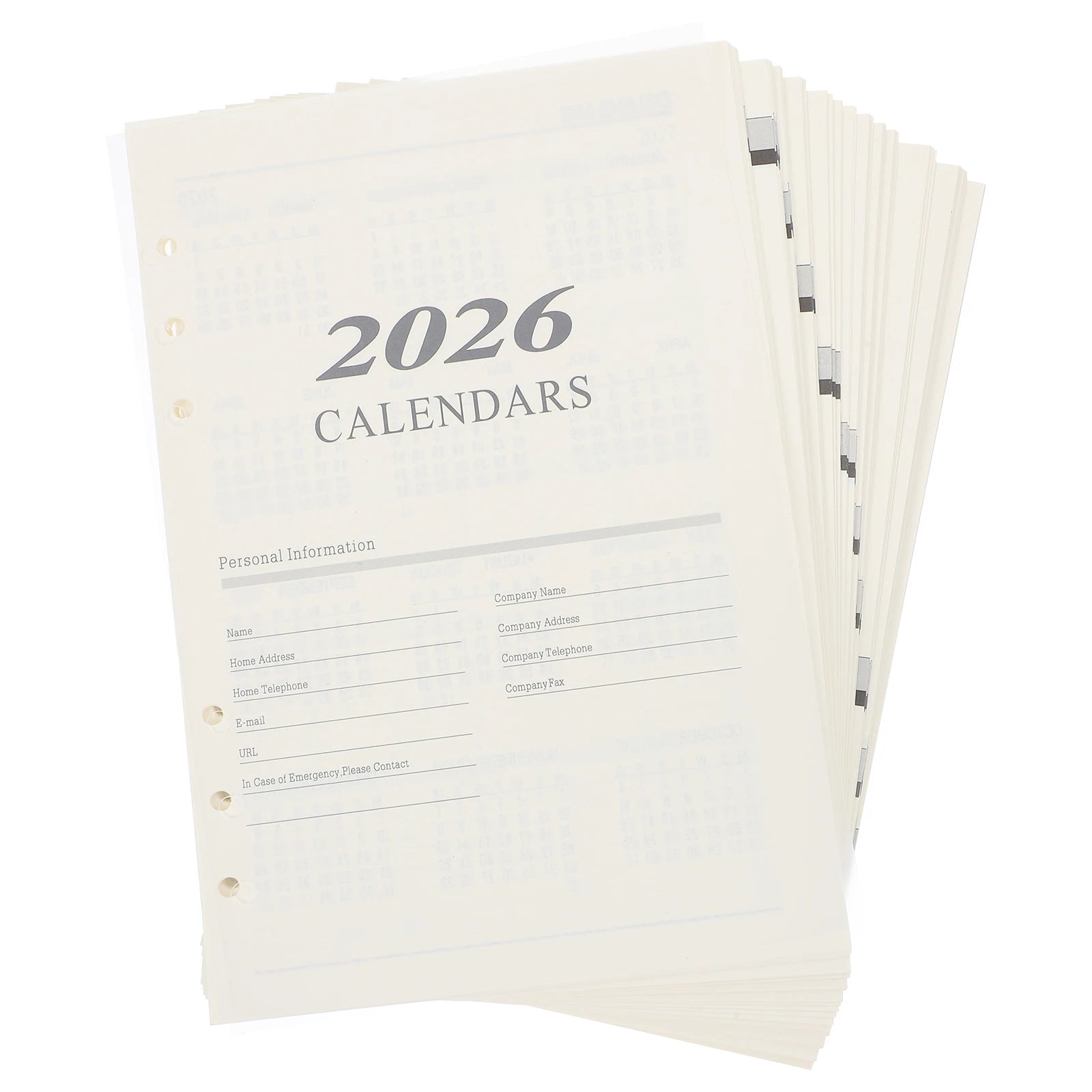 English Monthly Planner Refill 2026 Calendar Inserts 6 Hole Loose Leaf Paper Inserts A5 Size Daily Agenda Sheets Planner Pages