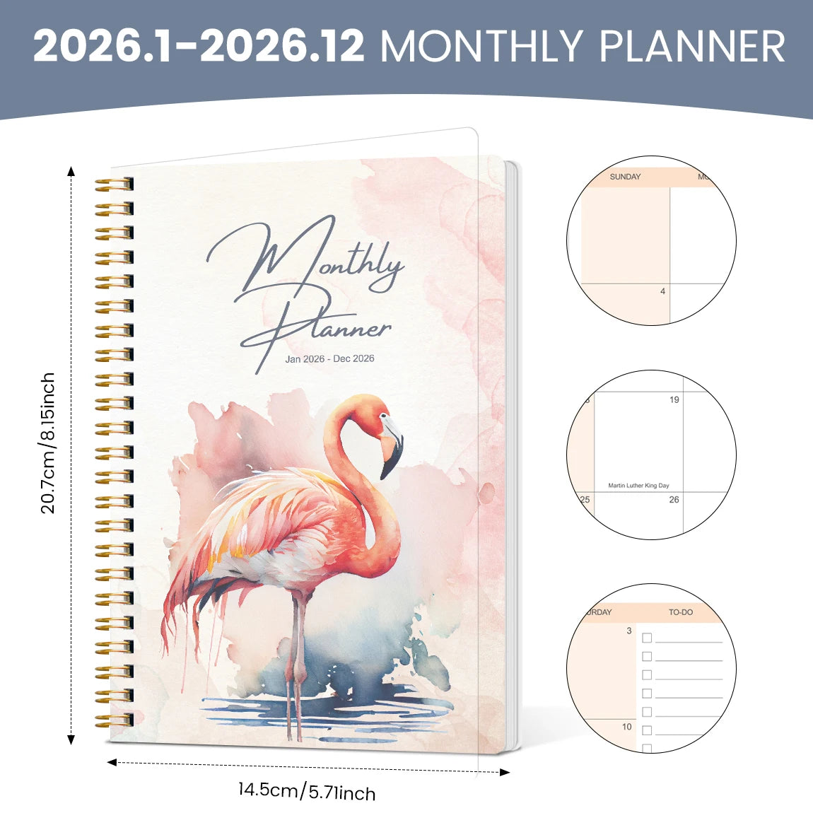 2026 A5 Monthly Planner, Modern Cover,Academic Agenda with Notes&To Do List,Perfect for Productivity,Time Management,Great Gift