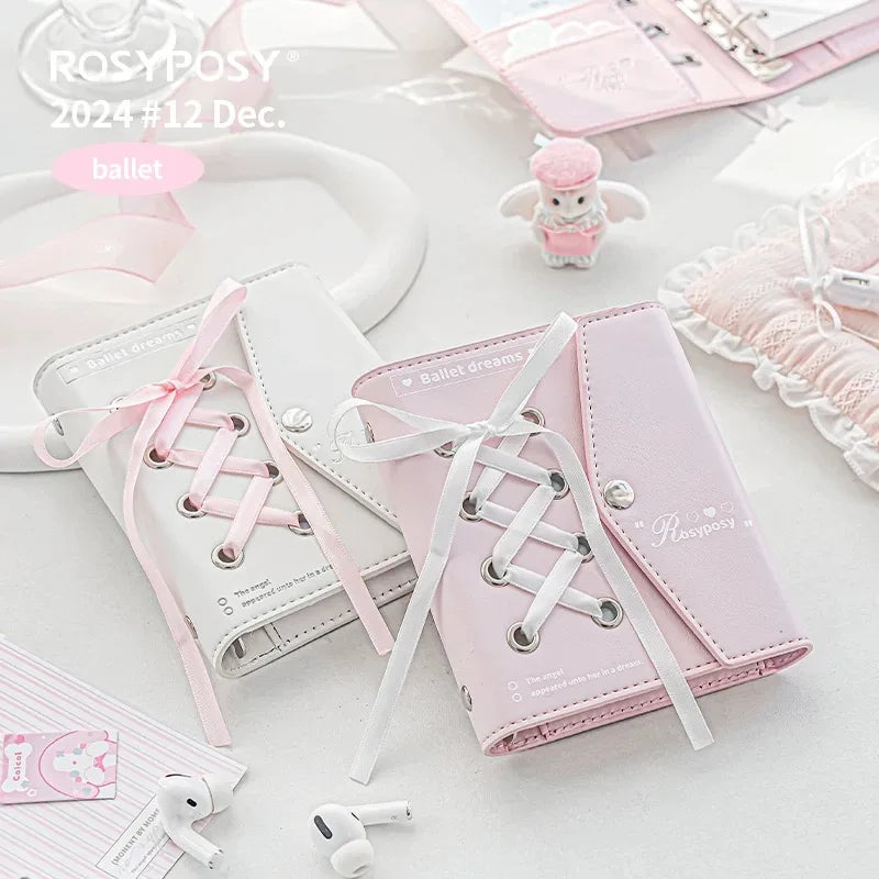 MINKYS 2025 Kawaii Ballet Pink Envelope PU Leather Notebook Planner Journal Agenda Book Gift School Stationery