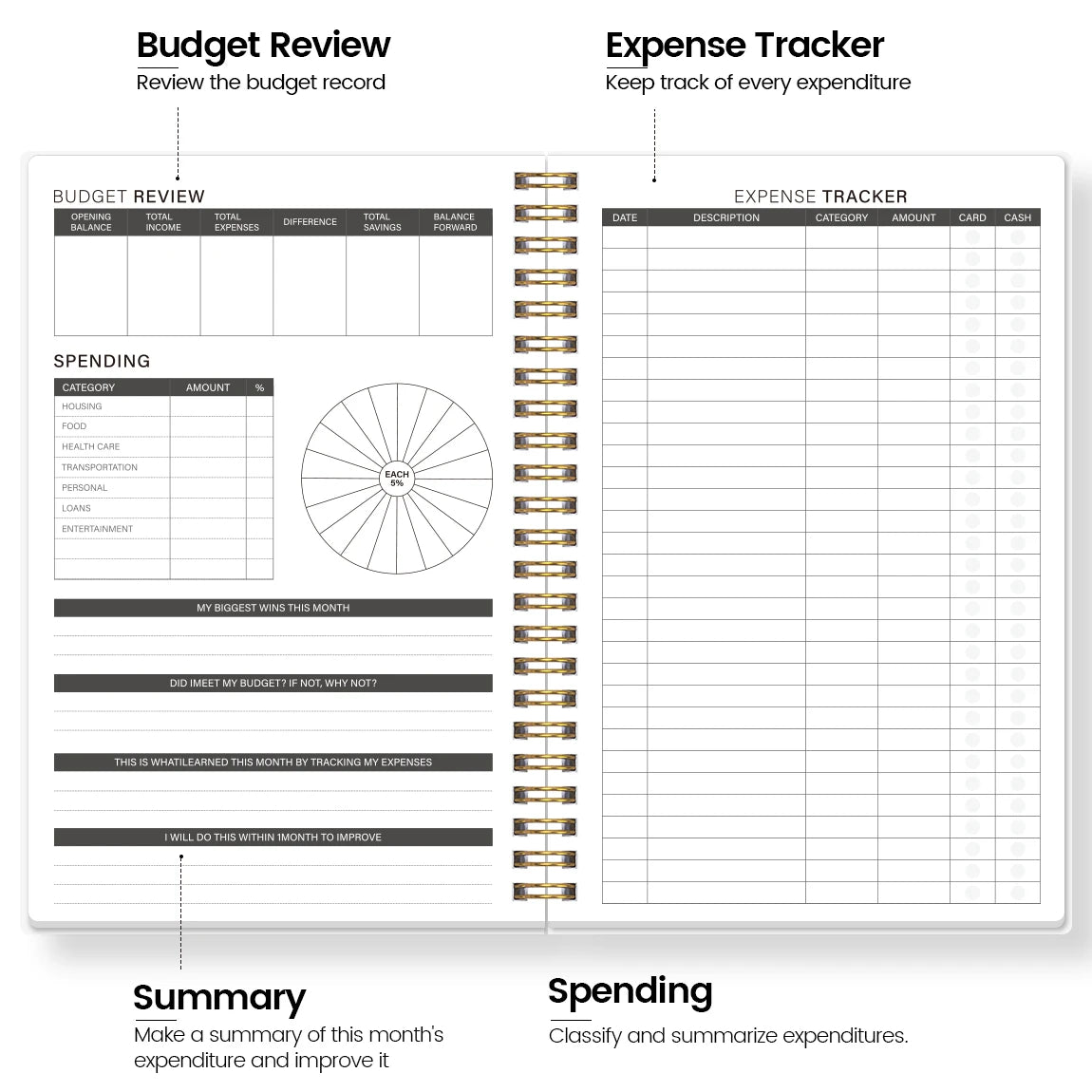 1PC A5 Budget Planner Book with Pastel Rainbow Design, Monthly Expense Tracker, Spiral Binding, Thick No-Bleed Pages